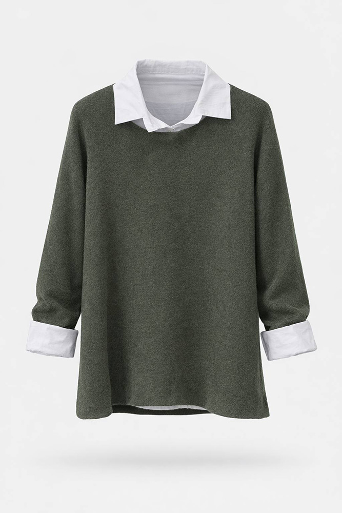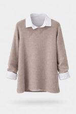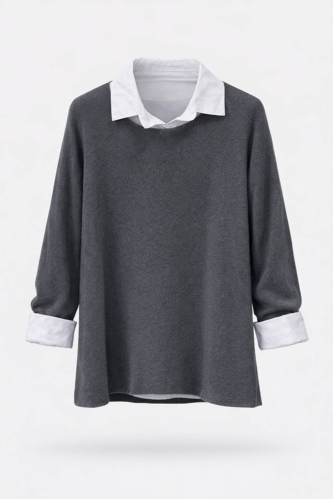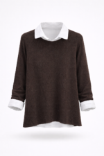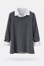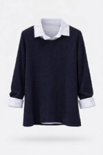 این بلوز زنانه با طراحی دو لایه (بلوز رویی بههمراه یقه و سرآستین پیراهنی)، ظاهری مرتب و شیک ایجاد میکند. مدل آزاد و قد ۶۸ سانتیمتر باعث شده برای استفاده روزمره، محل کار و استایلهای کژوال انتخابی کاربردی باشد.