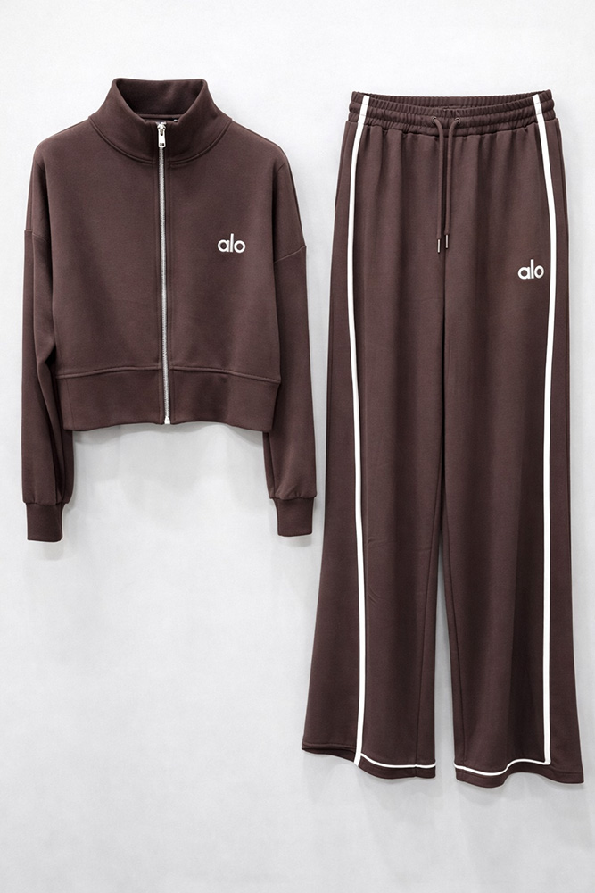 ست سویشرت و شلوار زنانه اسپرت | برند ALO | قد سویشرت ۵۰ | قد شلوار ۱۰۵ | رنگ مشکی و قهوه ای
