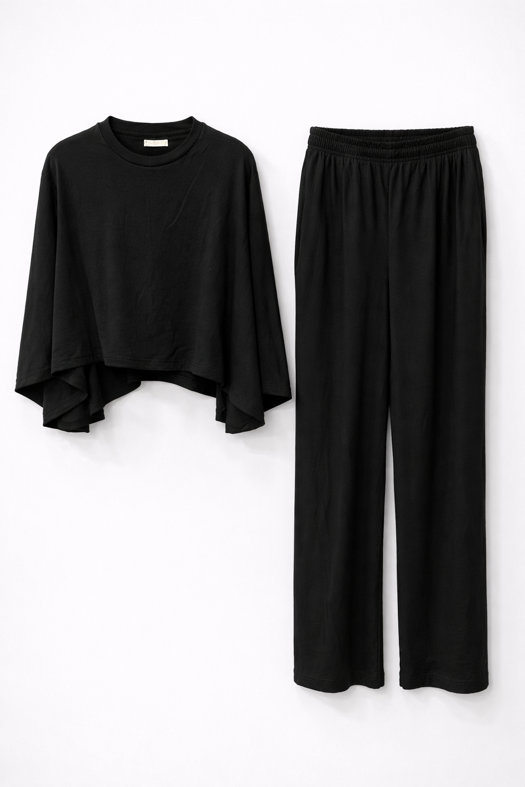 ست زنانه مشکی برند STA با طراحی خاص و مینیمال، انتخابی متفاوت برای استایلهای روزمره، ترندی و راحت.