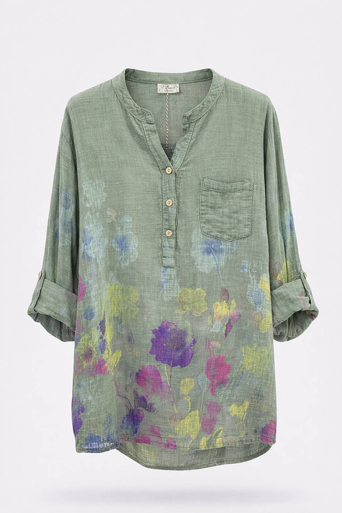 شومیز ایتالیایی هنری طرح گل | فریسایز قوارهدار