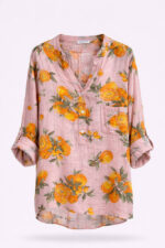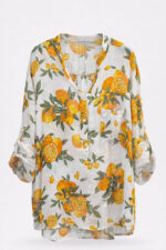 شومیز ایتالیایی با طرح شاد پرتقالی و پارچه سبک و خنک، انتخابی عالی برای استایل روزمره. فرم آزاد و قوارهدار آن باعث میشود روی تن راحت و خوشفرم باشد. یقه هفت دکمهدار و آستین قابل تا، کاربردی و شیک.