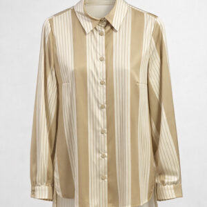 یقه کراواتی در کنار برش ساده و پارچه سبک و خوشفرم، ترکیبی از راحتی و ظرافت را فراهم کرده است. جزئیات ظریف در طراحی آستینها، به این شومیز ظاهری شیک و امروزی میدهد.