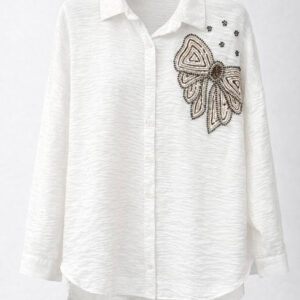 یک شومیز شیک و خاص با طراحی مینیمال که با نگیندوزی ظریف و طرح برجسته روی قسمت سرشانه، جلوهای متفاوت و چشمگیر ایجاد کرده ✨